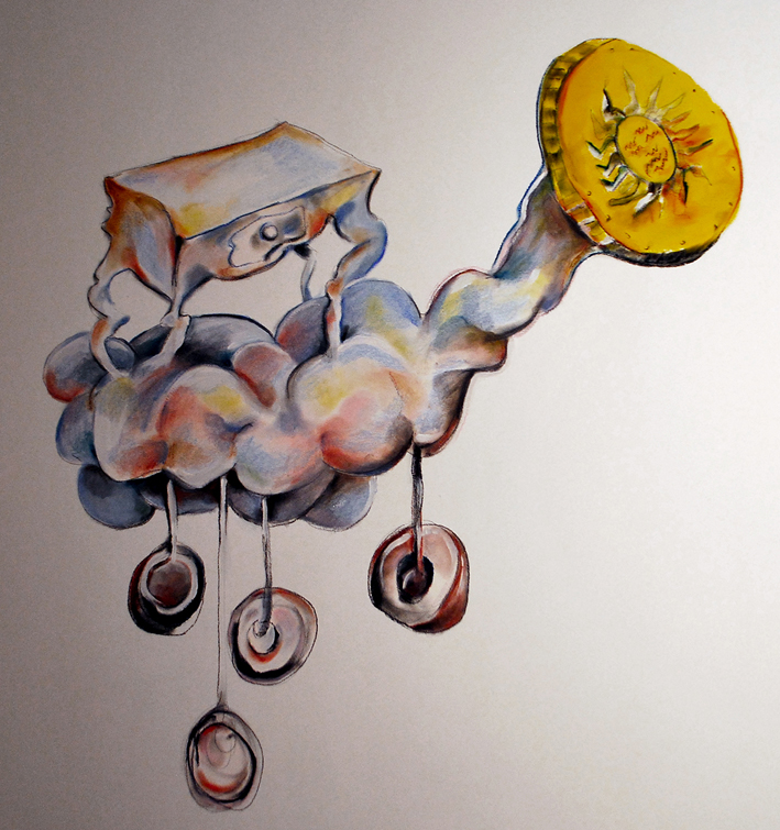 Sátira interpretada por personajes cuyas cabezas estan representadas por monedas .