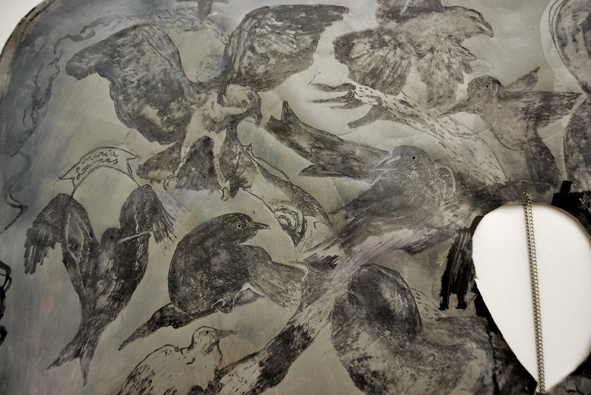 Las obras de Médium reúnen iconografía relativa a diversas religiones, tradiciones filosóficas y creencias populares para crear un cosmos en el cual las fuentes conviven en estado de armonía y poder. Se dan cita imágenes que remiten a la astrología, al cristianismo, al hermetismo y a la metafísica entre otras cosas. Médium propone que las sociedades somos canales de la historia y del pasado remoto, actualizando nociones arcaicas con la posibilidad de transformarlas. En palabras de Nikola Tesla "Todo lo que una vez hemos visto, escuchado, leído y aprendido, nos acompaña en forma de partículas de luz. Para mí, estas partículas son obedientes y fieles." |